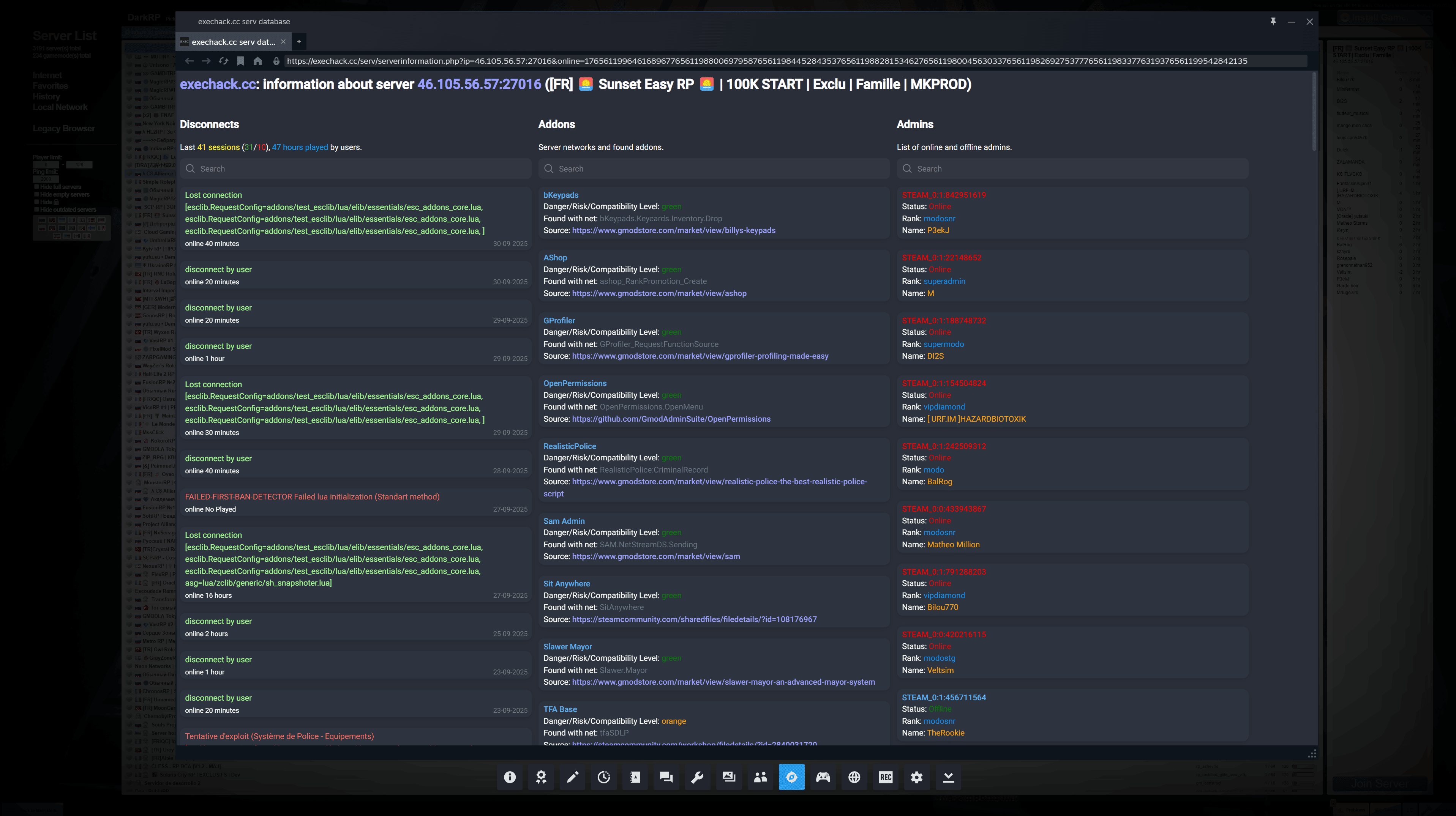 even before connecting, you can find out all the bans of other users with with information about their session, each addon with a link to the source, all online and offline admins.