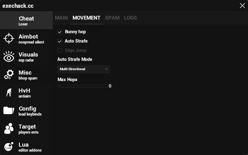 Auto Strafe with 3 types: legit, rage and multi-directional.