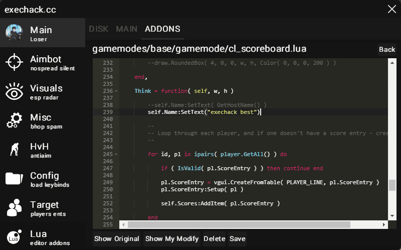 Lua Execution - run your lua script on server with autorun or in clientside server code with undetectable method.